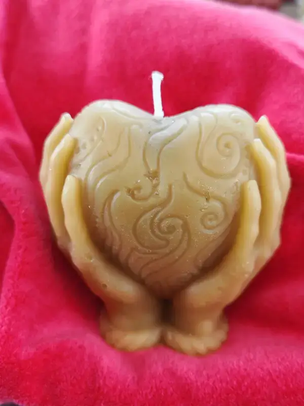 Bougie en cire d’abeille représentant un Cœur entre 2 mains